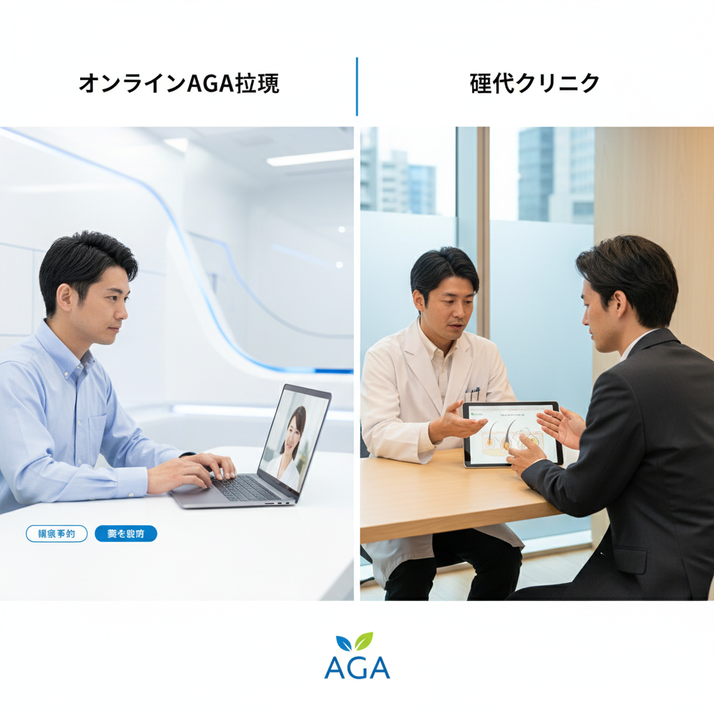 AGA治療を始めようと調べ始めると、最初にぶつかるのが「オンラインと対面、どっちにすればいいの?」という問題ではないでしょうか。