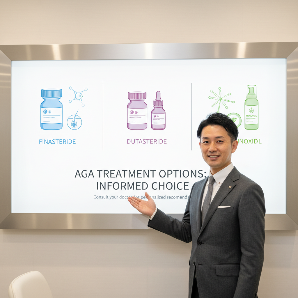 AGA治療を始めようとして最初に混乱するのが「薬が多すぎて選べない」問題だ。フィナステリド、デュタステリド、ミノキシジル——名前は聞いたことがあっても、何がどう違うのか、どれを選べばいいのか、具体的に理解している人は少ないと思う。
