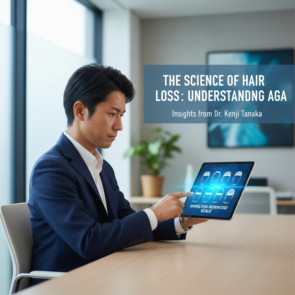 31歳でAGAクリニックを初めて受診したとき、医師がモニターに映し出したのがハミルトン・ノーウッド分類の図だった。7段階に分かれた薄毛の進行パターンがずらっと並んでいて、左端はフサフサ、右端はほぼツルツル。医師が「あなたは今このあたりですね」とIII型のあたりを指さした瞬間、正直ちょっと息が止まった。まだ30代前半なのに、7段階中の3番目まで来ているのか——と。